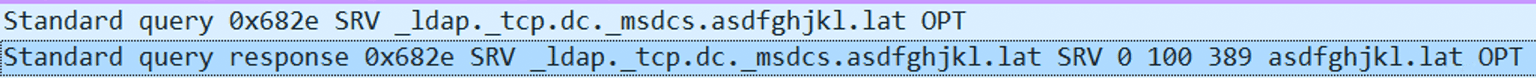 This request will trigger the target machine to resolve the domain, by making a DNS query to _ldap.tcp.dc._msdcs.<our_domain> .
