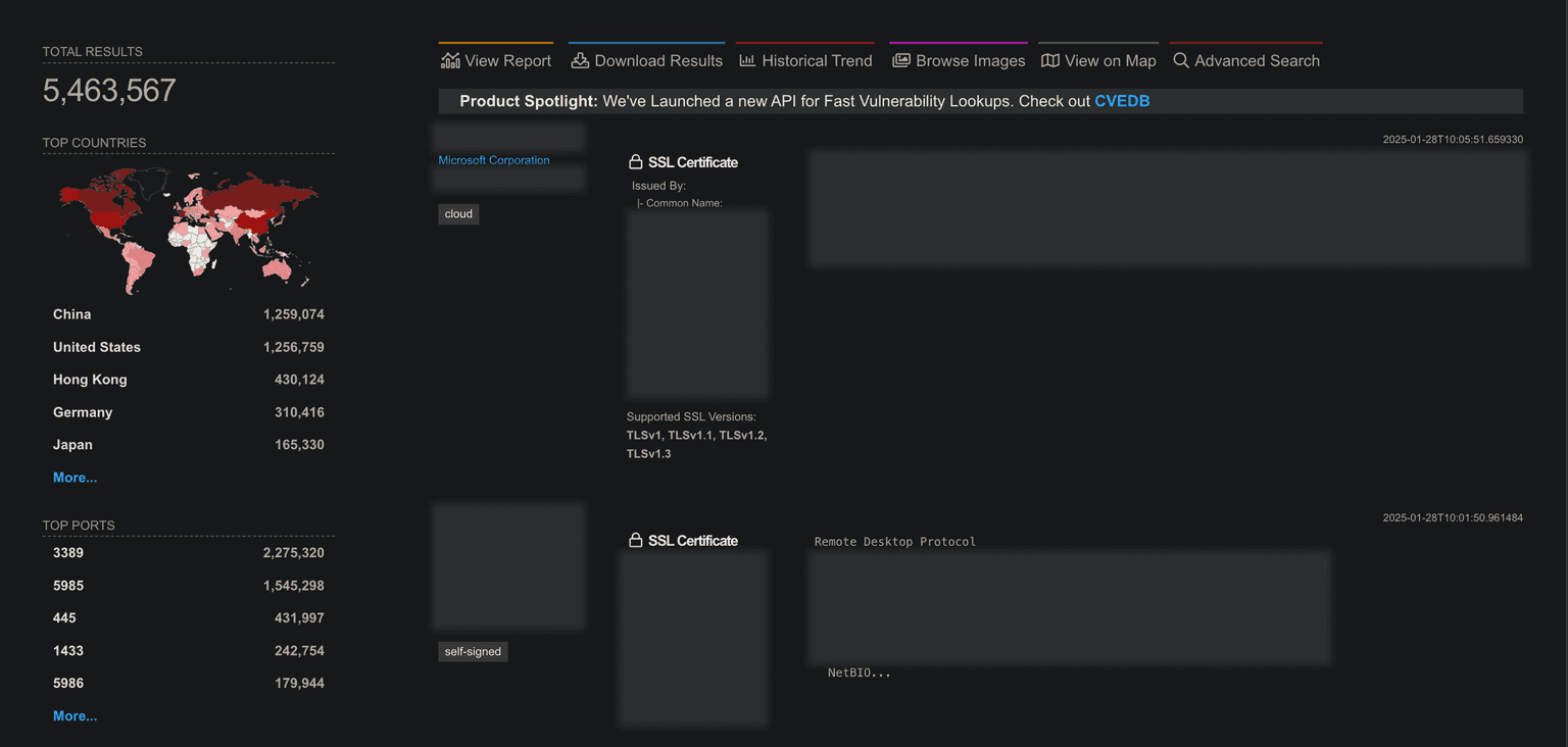 By January 2025, according to Shodan.io, around 5,400,000 possible Windows targets are accessible using public IP addresses.